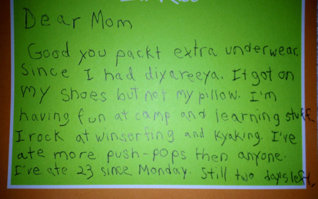 C’est bientôt la saison des camps, non? Voici une lettre qu’une maman ne s’imaginait pas recevoir et qu’elle nous confie (avec embarras peut-être, mais wouhou, j’en pleure de rire).