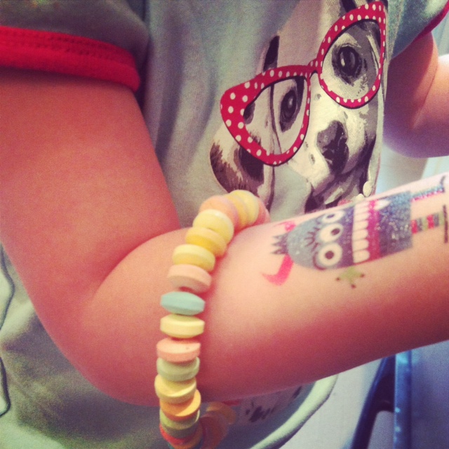 Mini Fée trouvait qu’un collier de bonbons (elle l’a trouvé alors que je tentais de faire le ménage du garde-manger) était difficile à manger…mais impossible d’y résister. Elle m’a alors dit qu’elle devait avoir des dents de loup pour pouvoir bien croquer. Elle a fait le bruit du loup (tout le monde sait que le loup fait AAAOUUUUUWOUHOUHOU) et puis ses dents de loup sont apparues.