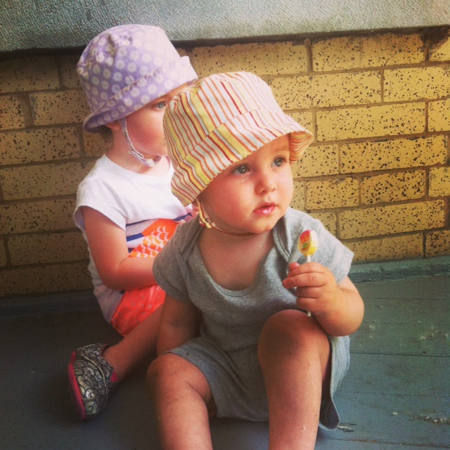 Ma fille est une gourmande très chanceuse: cette semaine elle a aussi eu le droit, tout comme son frère (I know, il est jeune pour bouffer sucré, mais il a tellement envie de tout goûter que je ne réussis pas à lui refuser ce que sa soeur mange en se régalant devant lui), a une sucette citronnée, cadeau d’un employé de la Charcuterie Varsovie.