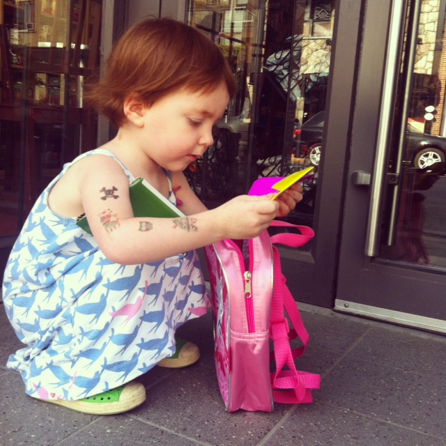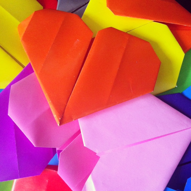 Toute la journée, Mini Fée a trimballé avec elle un sac Hello Kitty et elle a remis à des amis, à des mamans, à des papas, à un monsieur qu’elle croit être le Père-Noël et à une femme pompier des petits coeur en origami. Nous avons aussi collé des coeurs à la vitrine des commerces qu’elle apprécie mais qui étaient fermés lors de notre promenade.
