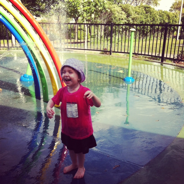 Toute habillée ou en maillot de bain à motifs de flamants roses, Mini Fée était super heureuse de se mouiller et de raconter après à son papa qu’elle n’avait même pas eu à faire pipi dans l’eau, parce que l’eau de la pataugeoire était déjà chaude. Yeah.