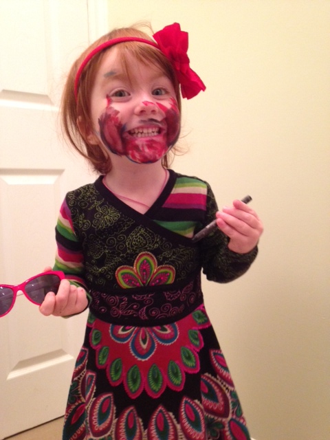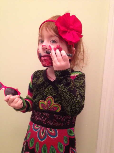 D’habitude, ma fille aime se maquiller en chat. Ou juste se mettre du brillant partout sur la face.
