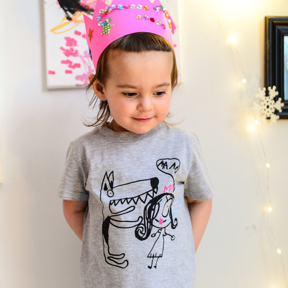 Pétronille: Les dessins de ma fille Zazie m’ont beaucoup influencée. Je suis tellement fan de ce qu’elle crée, de son univers. C’est de là que m’est venue l’idée de jouer avec ses dessins, grâce à la sérigraphie.