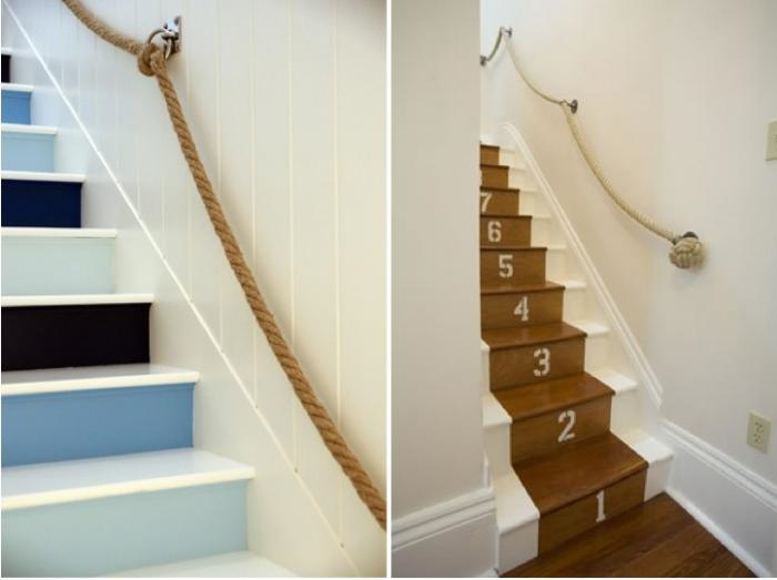 L’autre jour en lisant un vieux numéro de la revue Dwell, je suis tombée un escalier super simple mais tellement parfait pour des enfants. La rampe est une grosse corde, qui donne envie de s’y agriper et de grimper.