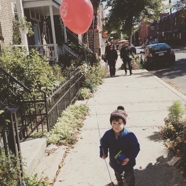 Ce weekend je suis allée au Frigo juste pour prendre des ballons. La super équipe de cette boutique fête leurs deux ans coin Masson et 9e avenue et ils ont choisi de festoyer avec des ballons rouges – des ballons de pompiers, selon mon fils, parce que les pompiers, c’est connu, raffolent de ballons et ne touchent qu’à ce qui est rouge rouge rouge.