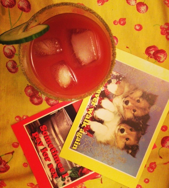 Hier soir, en buvant un Bloody Ceasar sans-alcool-mais-avec-mon-imagination-il-goûtait-pareil-qu’avec-alcool, j’ai pris de jolies cartes postales pour leur boite à lunch du lendemain. Mais les cartes postales avaient des messages pas top top (mes enfants ne savent pas lire – gasp – mais faut se garder une petite gêne pour les éducatrices et la DPJ).